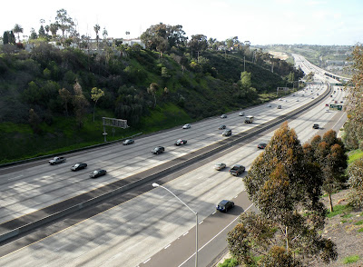 The view looking north up the 805, the bridge over Mission Valley ... the cop car is sitting in the center of the photo